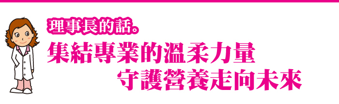 承蒙大家的信任與託付,讓我有機會承擔理事長這份重責大任,內心充滿感恩,帶著深深的敬意,也深知責任之重大。多年來,身為長期投入教育實務與臨床服務與臨床研究工作者的我,與大家站在同一條專業道路上,在各自工作場域,經歷挑戰、累積經驗,也一起見證營養專業逐步成長。親眼見證無數營養師在不同場域默默付出、堅守崗位的身影,正因為走過這樣的歷程,我更加明白,一個人的努力終究有限,唯有彼此信任扶持,集結全體營養師的力量,才能真正推動專業環境的進步,這份信念,是一種願意為彼此付出的行動。回顧這些年,營養專業能夠一步步走到今天,來自前輩們打下的基礎,也來自每一位會員在各自崗位上的默默付出。站在這個承先啟後的時刻,我們深感責任重大,全體理監事團隊須共同努力,把這份累積的專業轉化為更穩健的制度及長遠的發展方向。